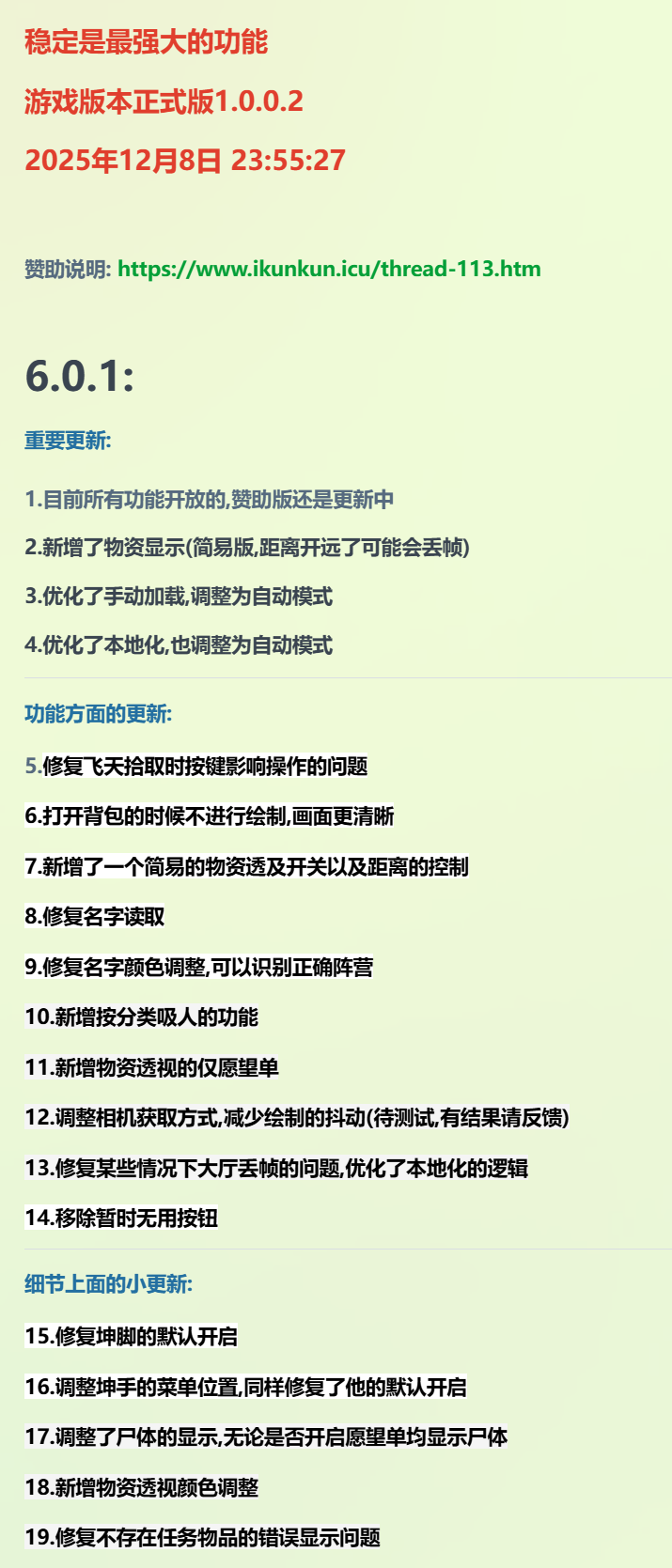 2025年11月18日 09:17:24 目前是第一步,新的办法过BE 2025年11月19日 16:19:29 尝试了3种办法均失败,正在尝试第四种,另外这次时间会比较长,不要一天问好几次好没好,更不要问我单人PVE会不会封号的问题,都公益的东西 你怕就别用35.67k 180 248 -
