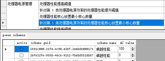 6.将处理器电源管理中的处理器性能核心放置最小核心数量